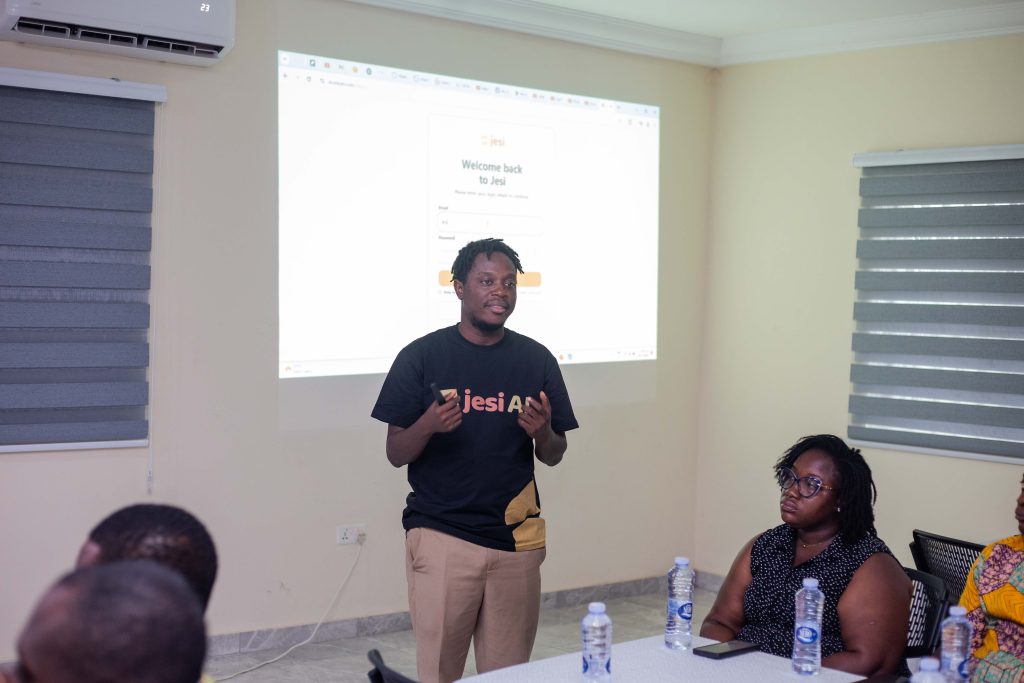 Each day of the workshop began with a warm welcome from Perfect Amegboe, COO of Jesi AI. As a venture born from our studio, Jesi AI’s mission aligns perfectly with Node Eight’s core values. Perfect highlighted how Node Eight exists to support young people in Ghana in building innovative solutions. She underscored that Jesi AI was specifically designed within our Venture Studio to directly address the critical needs of teachers and learners within Ghana’s education system.